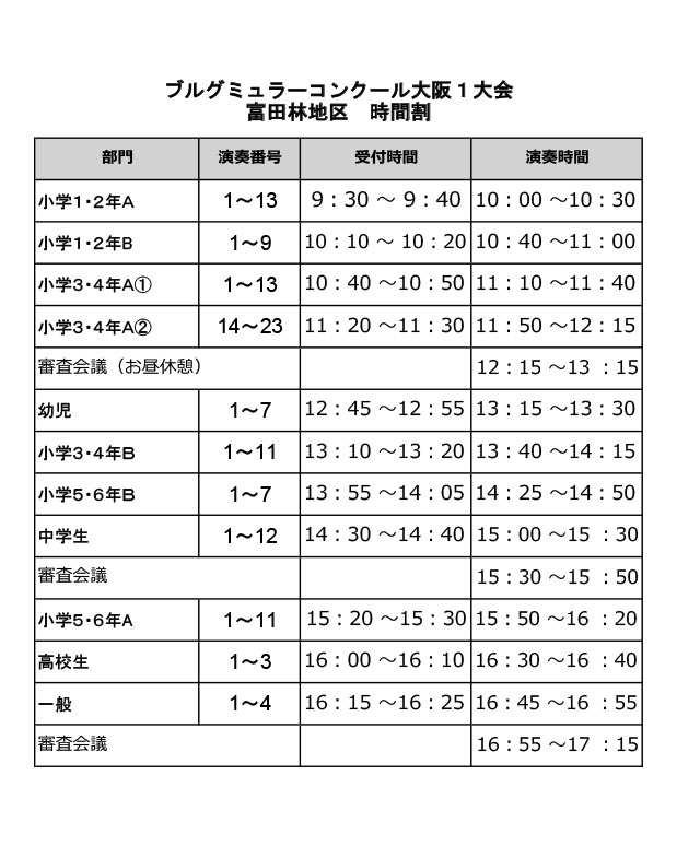 ☆受付時間、演奏順の変更には、いかなる理由においても一切応じられません。