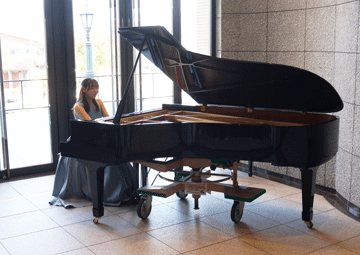 開場時間にはロビーにて大同理紗さんのピアノ演奏をお楽しみいただきました。曲目は、ショパンの小犬のワルツ、ベートーヴェンのピアノソナタ第24番Op.78「テレーゼ」から第1楽章、プロコフィエフのピアノソナタ第6番「戦争ソナタ」イ長調op82から第4楽章。あたたかく華やかな演奏でお客様の気分を盛り上げてくださいました。