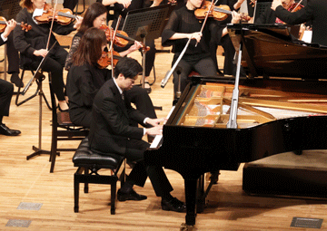 続いては、同校の講師でもある生熊茜さんをソリストに迎えサン=サーンスのピアノ協奏曲第5番「エジプト風」を演奏。生熊さんは、第1楽章は旅情あふれるように、第2楽章はエキゾチックな雰囲気が漂うように、第3楽章は圧倒的なエネルギーを放つように、といずれの楽章も活き活きと演奏してくださいました。